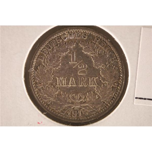 1915-F GERMAN SILVER 1/2 MARK .0802 OZ. ASW