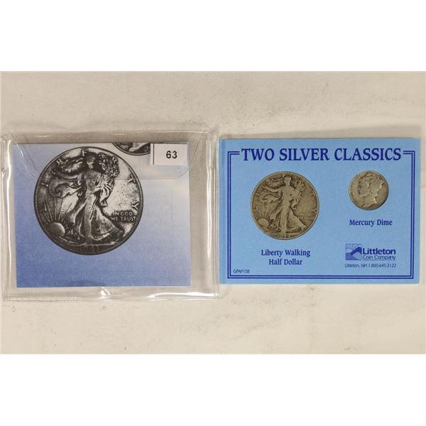 2 SILVER CLASSICS 1944-D WALKING LIBERTY HALF AND
