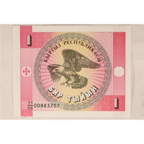 1993 KYRGYZSTAN 1 TYIYN CRISP UNC BANK NOTE