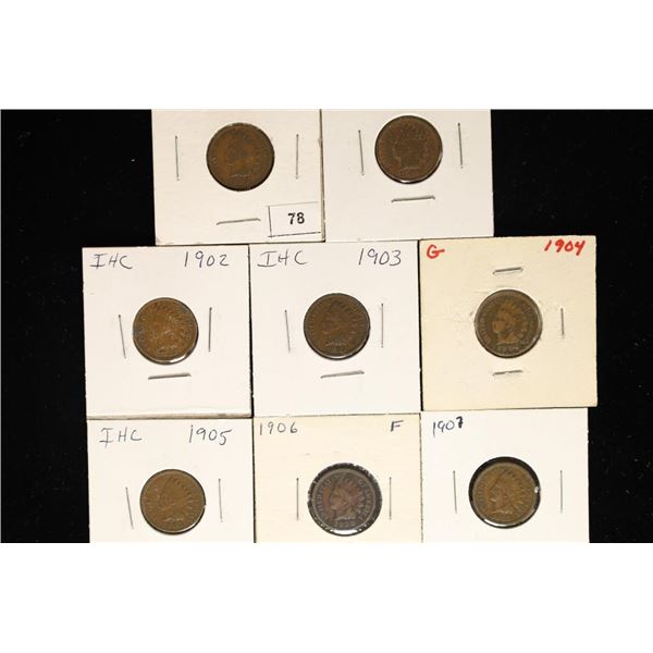 1900-1907 INDIAN HEAD CENTS (8 COINS) 1 OF EACH
