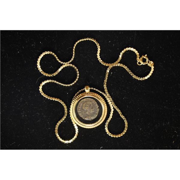 250-390 A.D. ANCIENT COIN IN GOLD FILLED NECKLACE