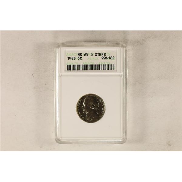 1963 JEFFERSON NICKEL ANACS MS65 FIVE STEPS