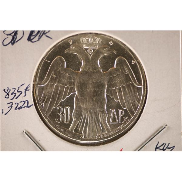 1964 GREECE SILVER 30 DRACHMA COIN .3222 OZ ASW BU