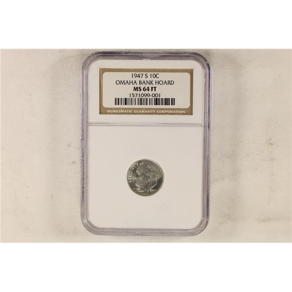 1947 ROOSEVELT DIME NGC MS64FT OMAHA BANK HOARD