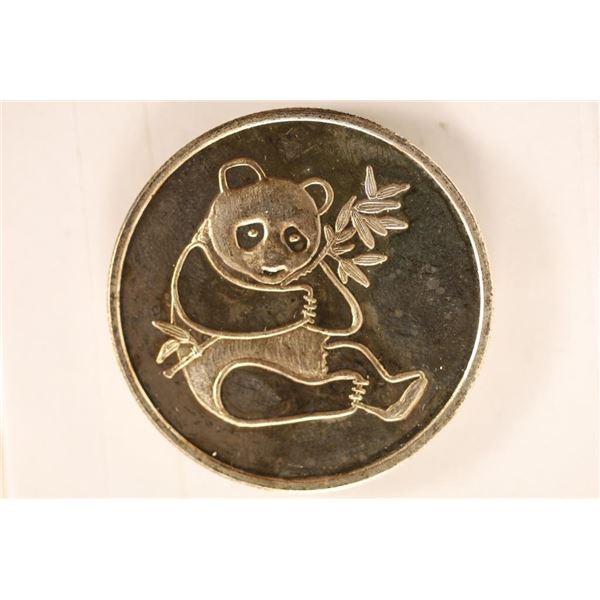 PANDA ON OBERSE & THE INTERNATIONAL SILVER TRADE UNIT WITH SCALE ON REVERSE. ROUND IS TONED