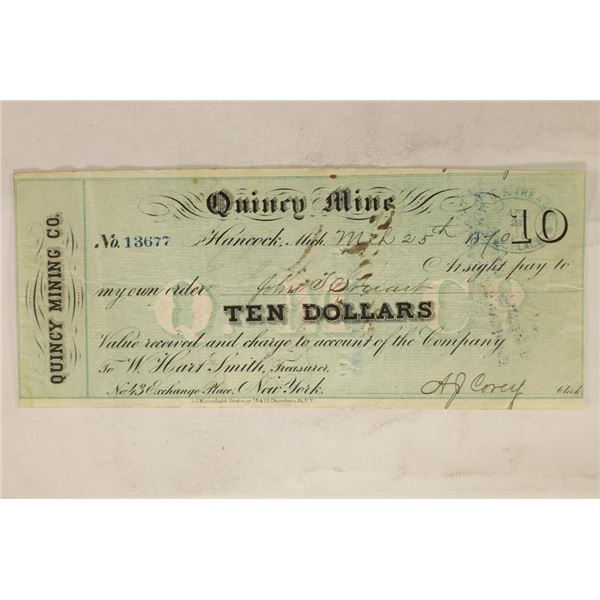 1840 QUINCY MINE CANCELLED CHECK CRISP WITH SOME