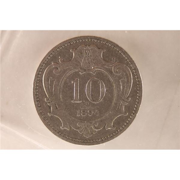 1894 AUSTRIA 10 HELLER (VERY FINE)