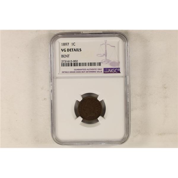 1897 INDIAN HEAD CENT NGC VERY GOOD DETAILS BENT