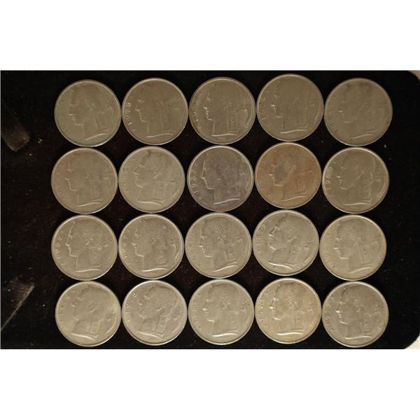 20 BELGUIM 5 FRANC COINS, DATES RANGE FROM