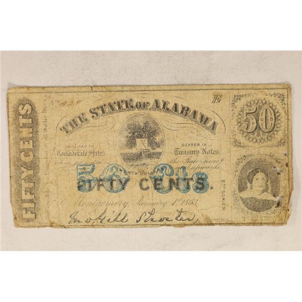 1863 THE STATE OF ALABAMA OBSOLETE 50 CENT BANK