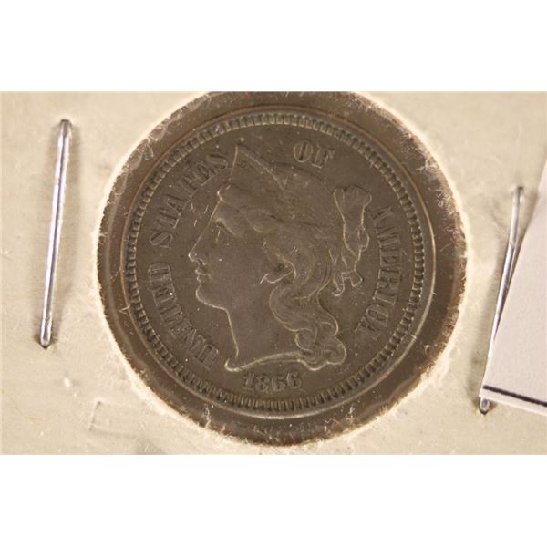 ERROR 1866 - 3 CENT NICKEL, DIE CLASH & DD OBV.