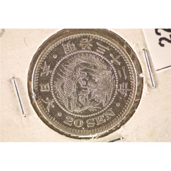 1899 JAPAN SILVER 20 SEN. VERY NICE CONDITION