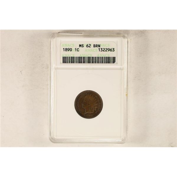 1890 INDIAN HEAD CENT ANACS MS62BRN
