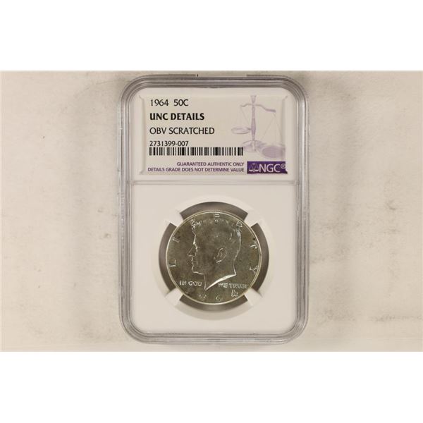 1964 KENNEDY HALF DOLLAR NGC UNC DETAILS OBV.