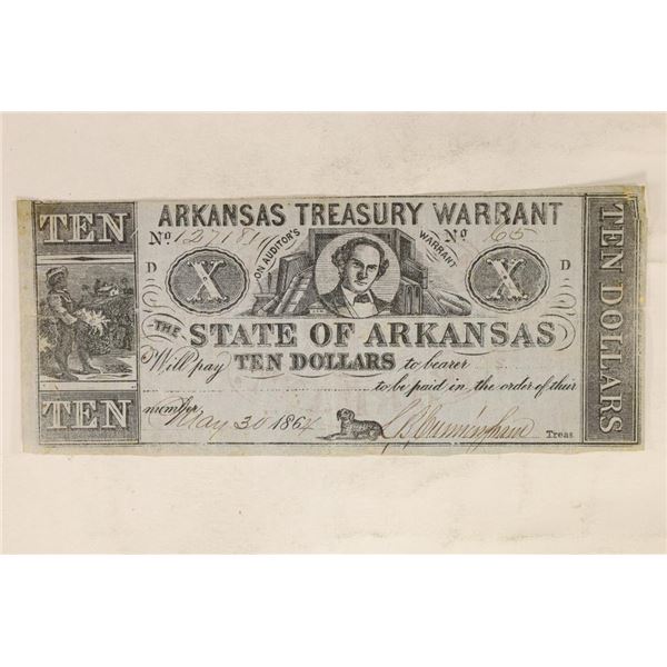 1864 STATE OF ARKANSAS $10 OBSOLETE TREASURY