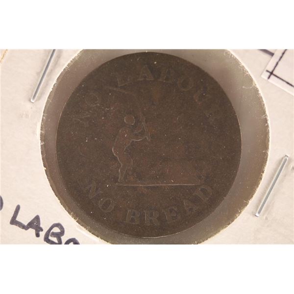 1830 CANADA HALF PENNY BANK TOKEN, "NO LABOUR NO