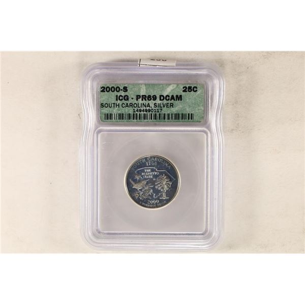 2000-S SILVER SOUTH CAROLINA QUARTER ICG PR69 DCAM
