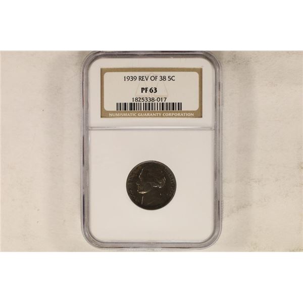 1939 REV. OF 38 JEFFERSON NICKEL NGC PF63