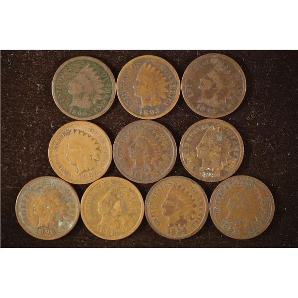 10 ASSORTED 1890'S INDIAN HEAD CENTS