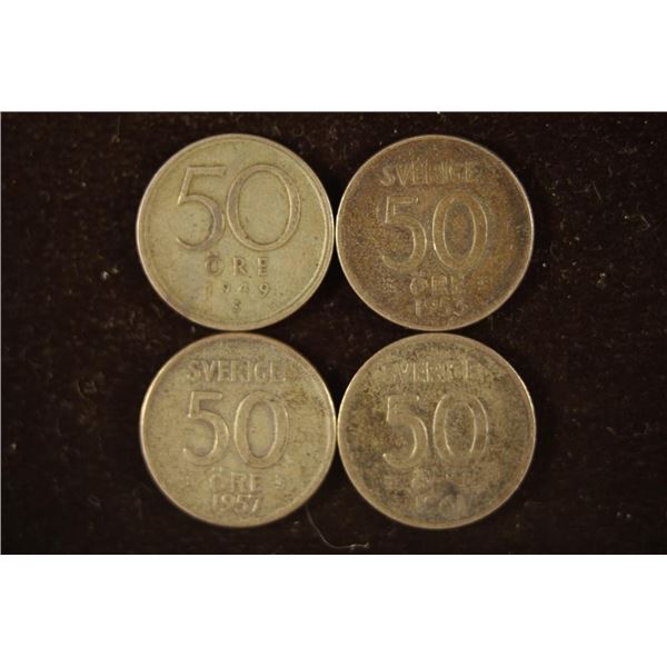 1949,1953,1957&1961 SILVER SWEDEN 50 ORE COINS