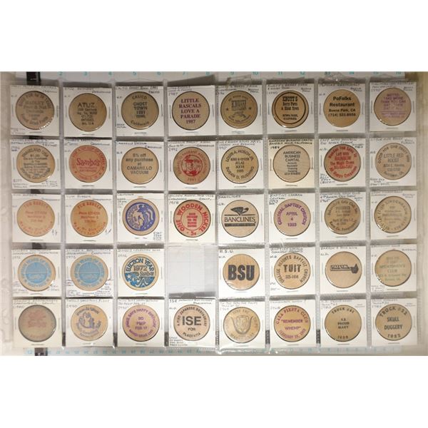 86 - 39 WOODEN NICKELS: BANCLINES, BSU, SKULL DUGGERY,BidALot Coin Auction
