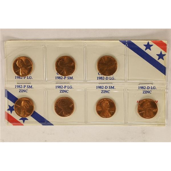 1982-7 VARIETIES LINCOLN CENT SET (UNC)55 - 1982-7 VARIETIES LINCOLN CENT SET (UNC)