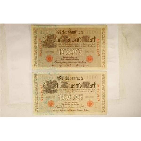 2-1910 GERMAN 1000 MARK CRISP BILLS67 - 2-1910 GERMAN 1000 MARK CRISP BILLS