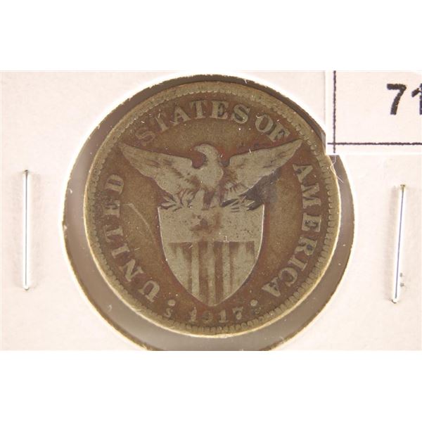 1917-S PHILIPPINES SILVER 50 CENTAVOS COIN71 - 1917-S PHILIPPINES SILVER 50 CENTAVOS COIN