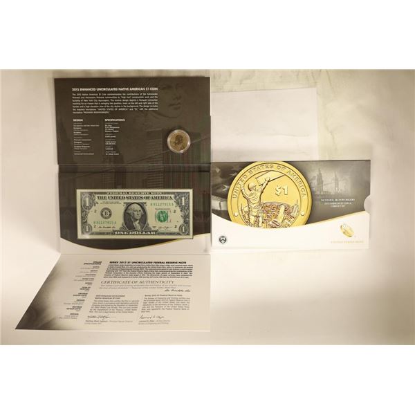AND CURRENCY SET, CONTAINS: ENHANCED UNC NATIVE AMERICAN DOLLAR COIN AND A 2013 $1 FRN CRISP UNC, ORIGINAL US MINT PACKAGING