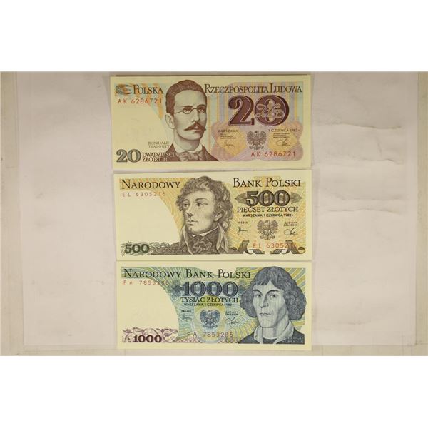 3 BANK OF POLAND CRISP BILLS: 1982-20 UNC ZLOTYCH,85 - 3 BANK OF POLAND CRISP BILLS: 1982-20 UNC ZLOTYCH,