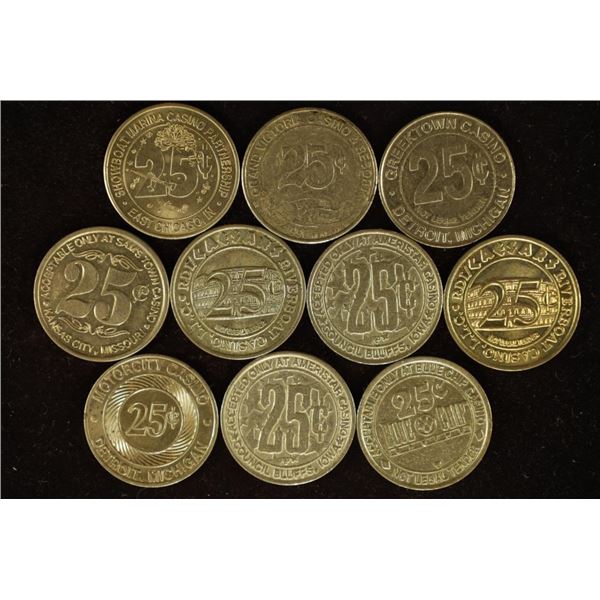 10 METAL 25 CENT CASINO TOKENS: SAM'S TOWN,90 - 10 METAL 25 CENT CASINO TOKENS: SAM'S TOWN,