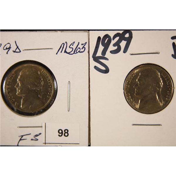 1939-D AND S JEFFERSON NICKELS BRILLIANT UNC98 - 1939-D AND S JEFFERSON NICKELS BRILLIANT UNC