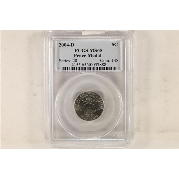 2004-D PEACE MEDAL NICKEL PCGS MS6523 - 2004-D PEACE MEDAL NICKEL PCGS MS65