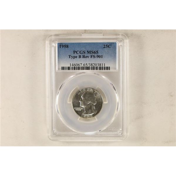 1958 WASHINGTON SILVER QUARTER PCGS MS65 TYPE B.24 - 1958 WASHINGTON SILVER QUARTER PCGS MS65 TYPE B.