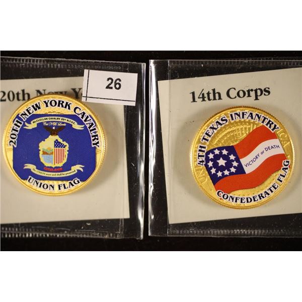 BOTH BRILLIANT UNC, "20TH NEW YORK CAVALRY" AND "4TH TEXAS INFANTRY"