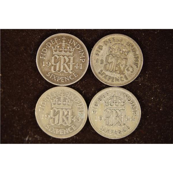 1941,2-1943&44 GREAT BRITIAN SILVER 6 PENCE COINS265 - 1941,2-1943&44 GREAT BRITIAN SILVER 6 PENCE COINS