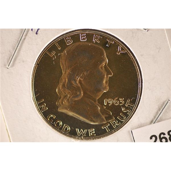 1963 FRANKLIN HALF DOLLAR PROOF WITH GOLDEN268 - 1963 FRANKLIN HALF DOLLAR PROOF WITH GOLDEN