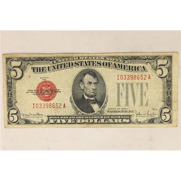 1928-F US $5 NOTE, RED SEAL280 - 1928-F US $5 NOTE, RED SEAL