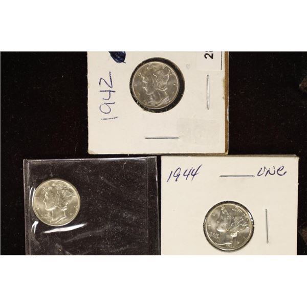 1942, 1942-D & 1944 MERCURY DIMES ALL BU288 - 1942, 1942-D & 1944 MERCURY DIMES ALL BU
