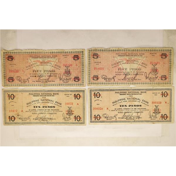 2-1943 FIVE PESO AND 2-1941 TEN PESO