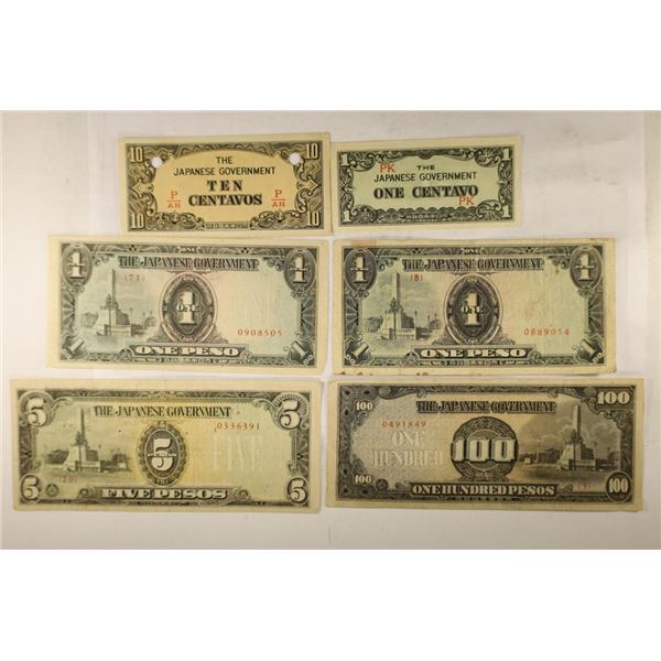 6 PIECES OF WWII JAPANESE GOVERNMENT INVASION171 - 6 PIECES OF WWII JAPANESE GOVERNMENT INVASION