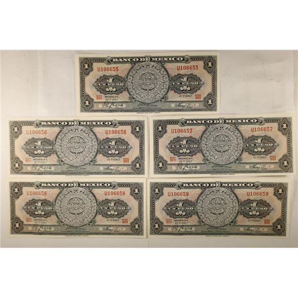 5-1967 MEXICO 1 PESO BILLS CONSECUTIVE SERIAL180 - 5-1967 MEXICO 1 PESO BILLS CONSECUTIVE SERIAL