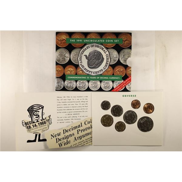 1991 AUSTRALIA UNC COIN SET COMMEMORATING 25 YEARS185 - 1991 AUSTRALIA UNC COIN SET COMMEMORATING 25 YEARS