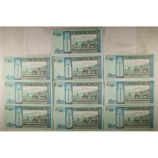 10 PIECES OF MONGOLIAN 10 TUGRIKS CRISP UNC189 - 10 PIECES OF MONGOLIAN 10 TUGRIKS CRISP UNC