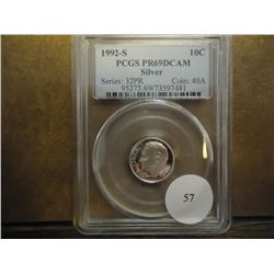 1992-S SILVER ROOSEVELT DIME PCGS PR69 DCAM
