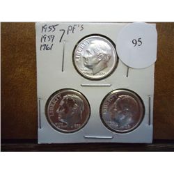 1955,59 & 61 SILVER ROOSEVELT DIMES PROOF