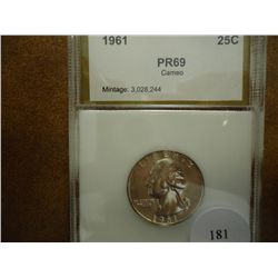 1961 WASHINGTON SILVER QUARTER PCI PR69 CAMEO