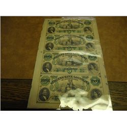 SCARCE UNCUT SHEET OF 4-1857 LOUISIANA $5 OBSOLETE