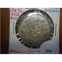 1959 NETHERLANDS 2 1/2 GULDEN .3472 OZ. ASW TOTAL