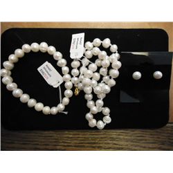 BRACELET. 16" NECKLACE 8-9MM, HAND KNOTTED, RETAILS FOR $70.00, 7" BRACELET 7-9MM, HAND KNOTTED, RETAILS FOR $50.00 AND THE EARINGS ARE ...